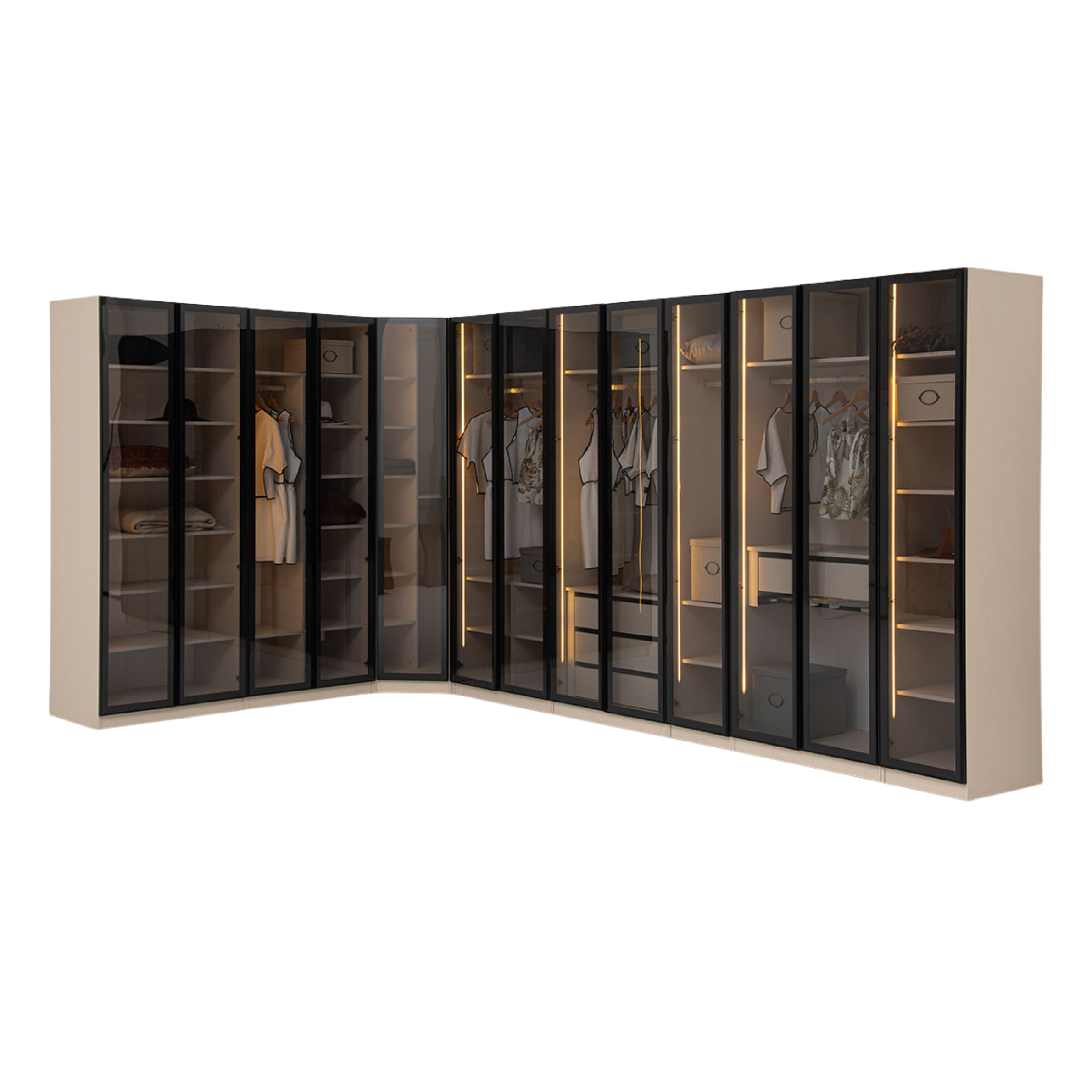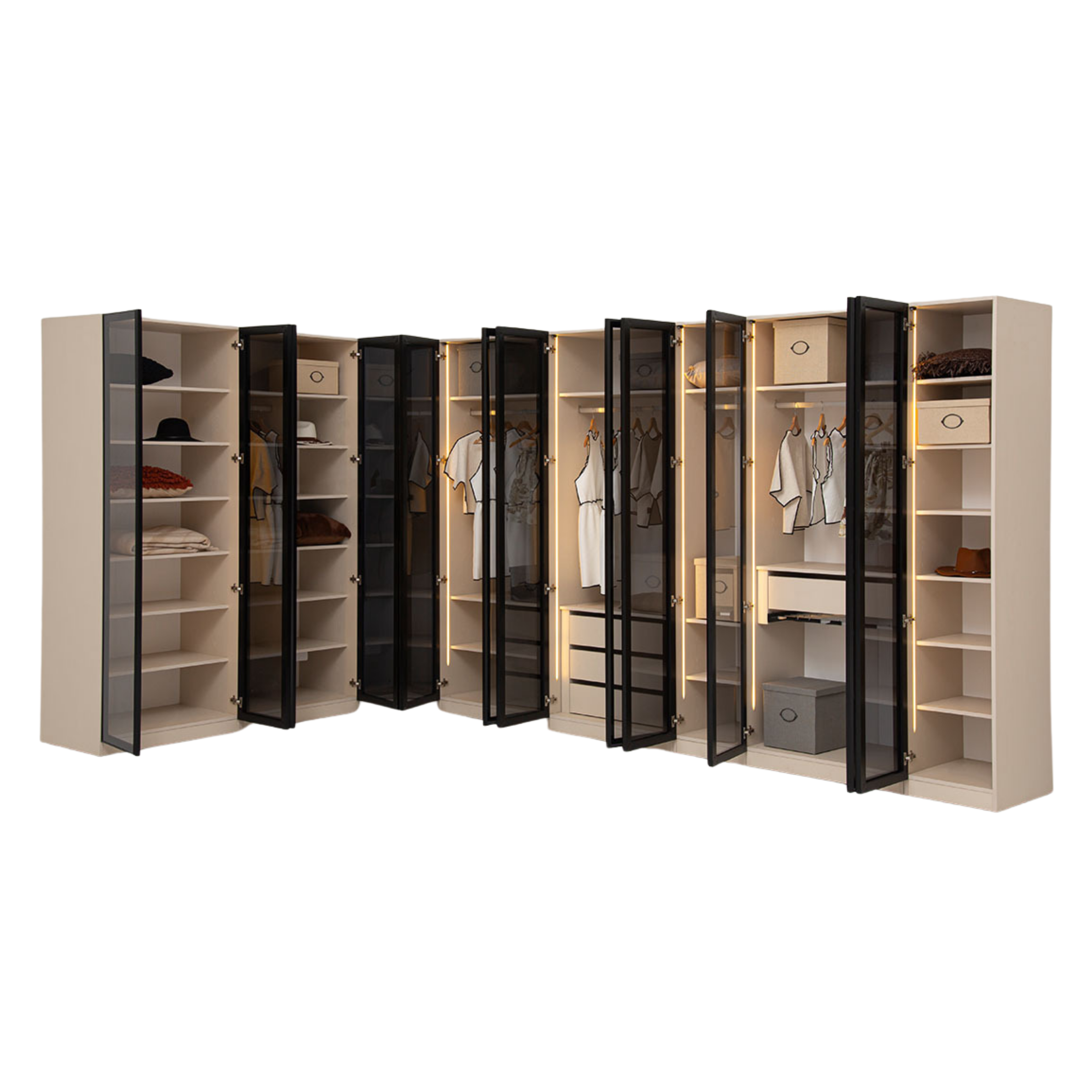 Houd de kledingkast stofvrij met een zachte doek of plumeau. Gebruik een lichtvochtige doek voor oppervlakkige vervuiling en droog daarna goed na. Beweeg lades rustig en zonder kracht. Vermijd contact met vochtige oppervlakken, agressieve reinigingsmiddelen en langdurige blootstelling aan zonlicht.