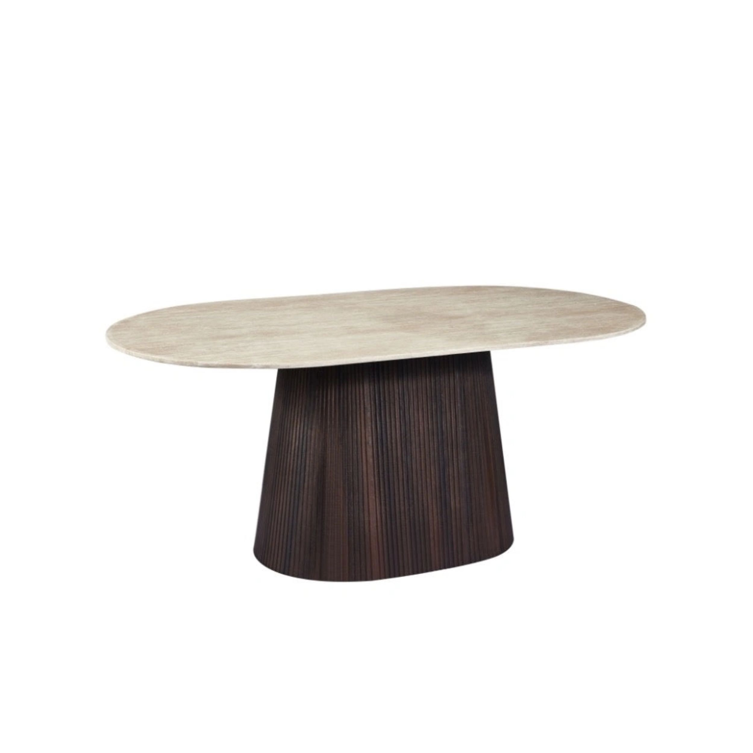 marmerlook rust op een stevig onderstel met subtiele verticale groeven, wat zorgt voor een