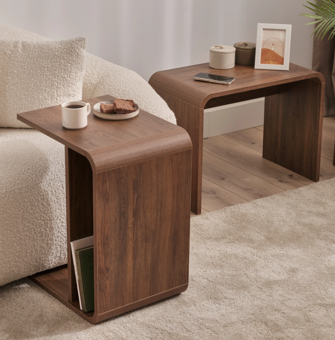 De Girona bijzettafel combineert moderne elegantie met natuurlijke warmte. De afgeronde hoeken en vloeiende lijnen geven dit meubelstuk een zachte, organische uitstraling, terwijl het rijke houtfineer zorgt voor een warme, luxueuze sfeer. Het compacte ontwerp maakt deze tafel veelzijdig inzetbaar: perfect naast de bank, als stijlvolle nachttafel of als functionele eyecatcher in de hal. Dankzij het ingebouwde open vak biedt de tafel extra ruimte voor boeken, accessoires of persoonlijke items, zonder aan elegantie in te boeten. De Girona is een prachtig voorbeeld van minimalistisch design met maximale impact — tijdloos, stijlvol en praktisch.