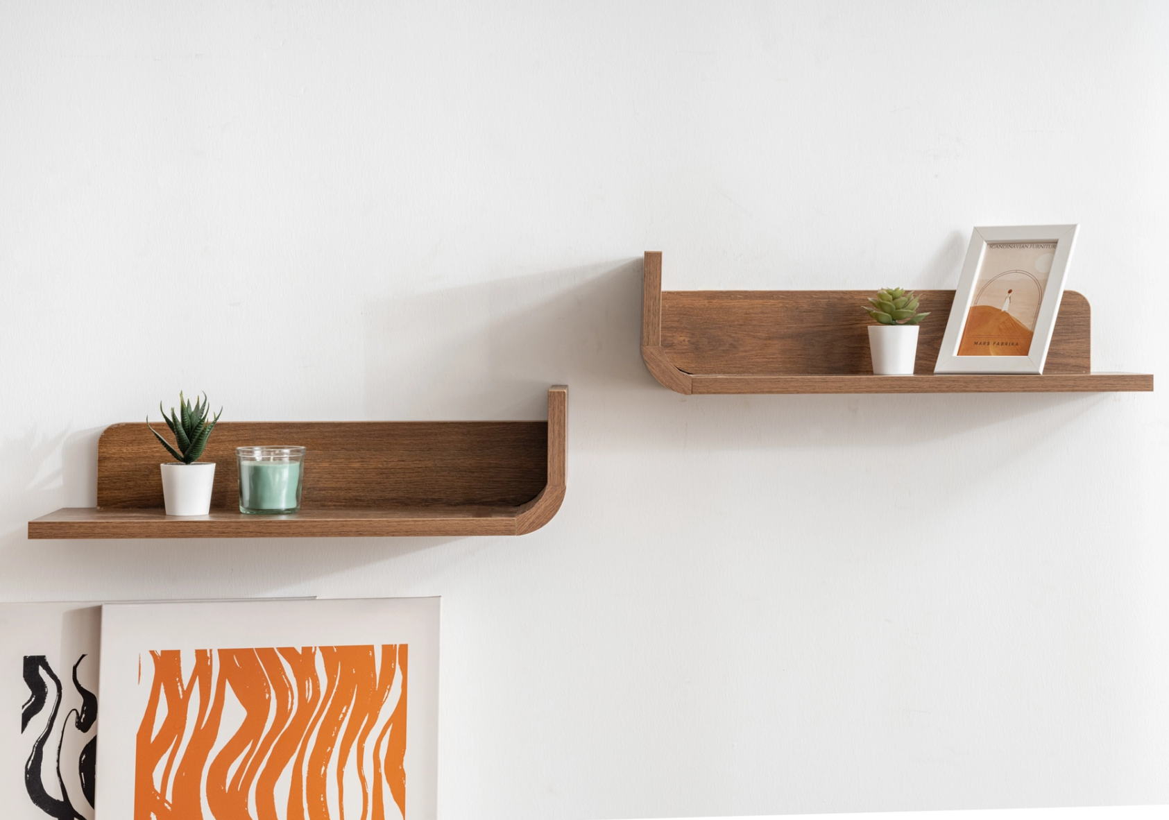 De Girona plank combineert eenvoud met elegantie dankzij het afgeronde design en het warme walnootfineer. Deze zwevende wandplank biedt een stijlvolle oplossing om boeken, accessoires of decoratieve objecten te presenteren. Het minimalistische ontwerp maakt het geschikt voor vrijwel elk interieur, van modern tot klassiek. De solide afwerking garandeert duurzaamheid, terwijl de zachte vormen een rustige uitstraling geven aan de ruimte. Perfect voor wie zoekt naar een subtiele, maar karaktervolle wanddecoratie.
