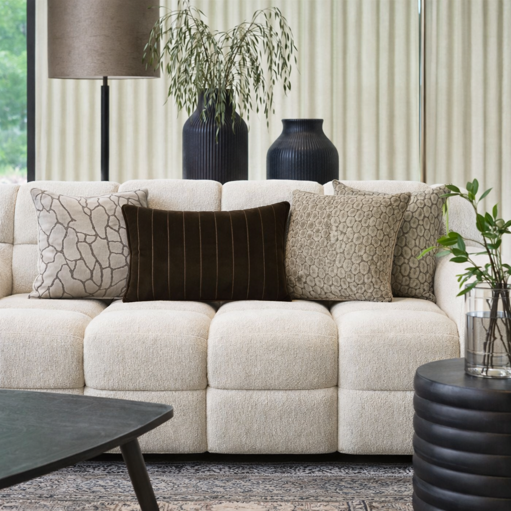 Het Igory kussen straalt rust en verfijning uit dankzij zijn subtiele structuur en luxe afwerking.
