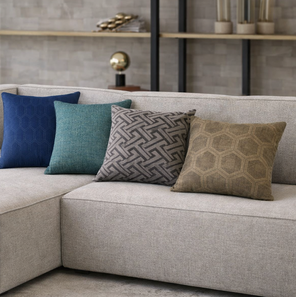 Klop de kussens regelmatig op en wissel ze van plaats om de vorm mooi te houden. Verwijder stof met een kledingroller of zachte borstel. Raadpleeg altijd het waslabel bij afneembare hoezen. Vermijd direct zonlicht om verkleuring te voorkomen.