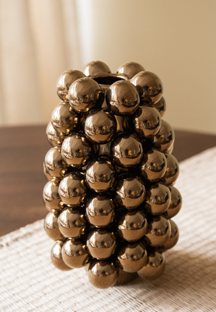Deze fijne keramieken vaas met metallic afwerking voegt een stijlvolle, moderne touch toe aan je interieur.