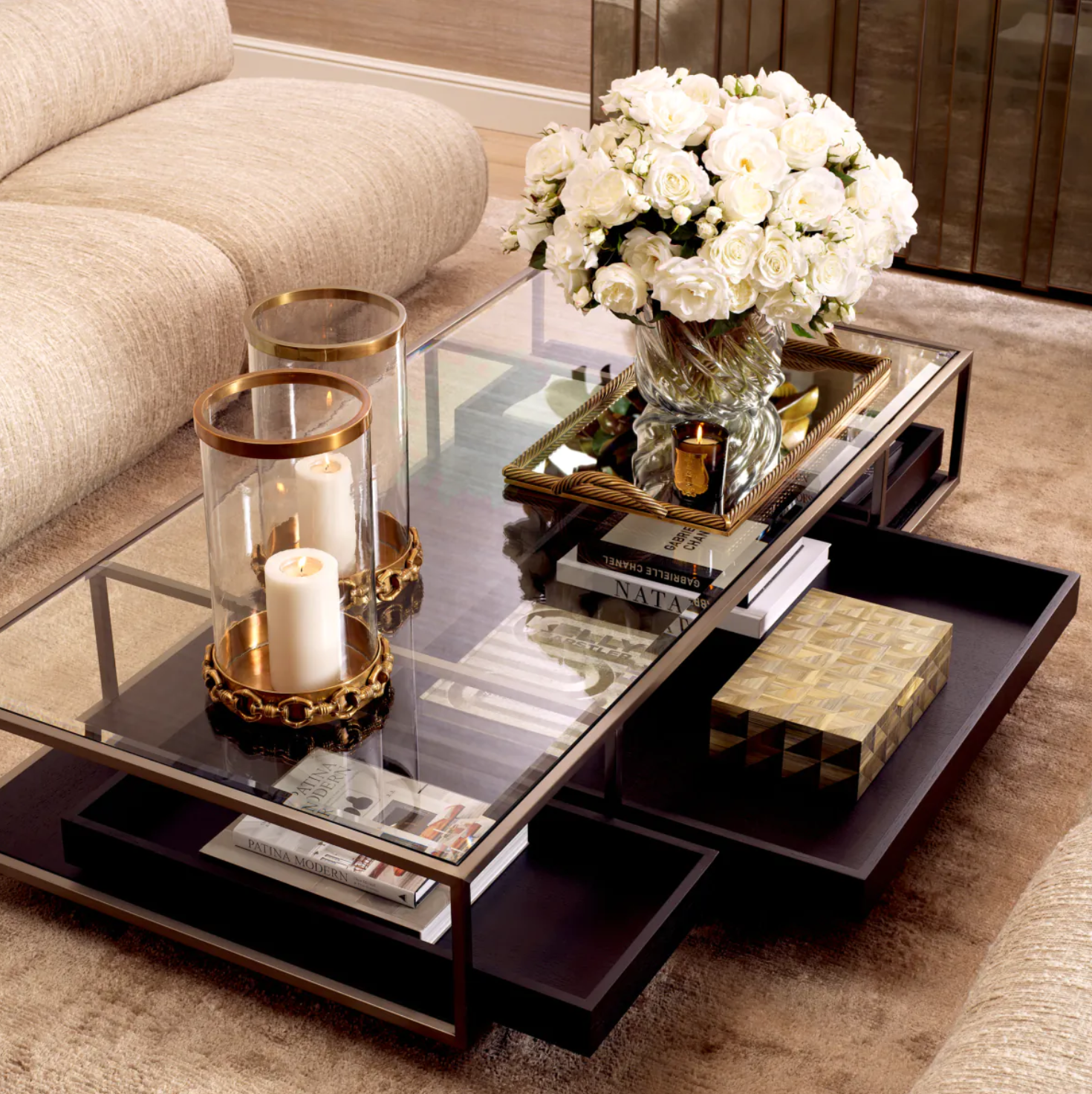 De Raymond salontafel 180 is een eigentijds en decoratief middelpunt dat functionaliteit en design moeiteloos combineert. Het glazen tafelblad zorgt voor een verfijnde, moderne uitstraling en geeft het geheel een lichte, luchtige look. Wat de Raymond salontafel uniek maakt, is het creatieve gebruik van ruimte. In plaats van traditionele, gesloten opbergruimte beschikt deze tafel over uitschuifbare lades met transparante fronten. Hierdoor blijven de inhoud en decoratieve items zichtbaar, waardoor de tafel niet alleen praktisch is, maar ook een stijlvol podium vormt voor je favoriete accessoires of boeken. Met zijn vernieuwende vormgeving en elegante materiaalgebruik is de Raymond salontafel een echte blikvanger in elk modern interieur — een perfecte balans tussen functionaliteit en esthetiek.