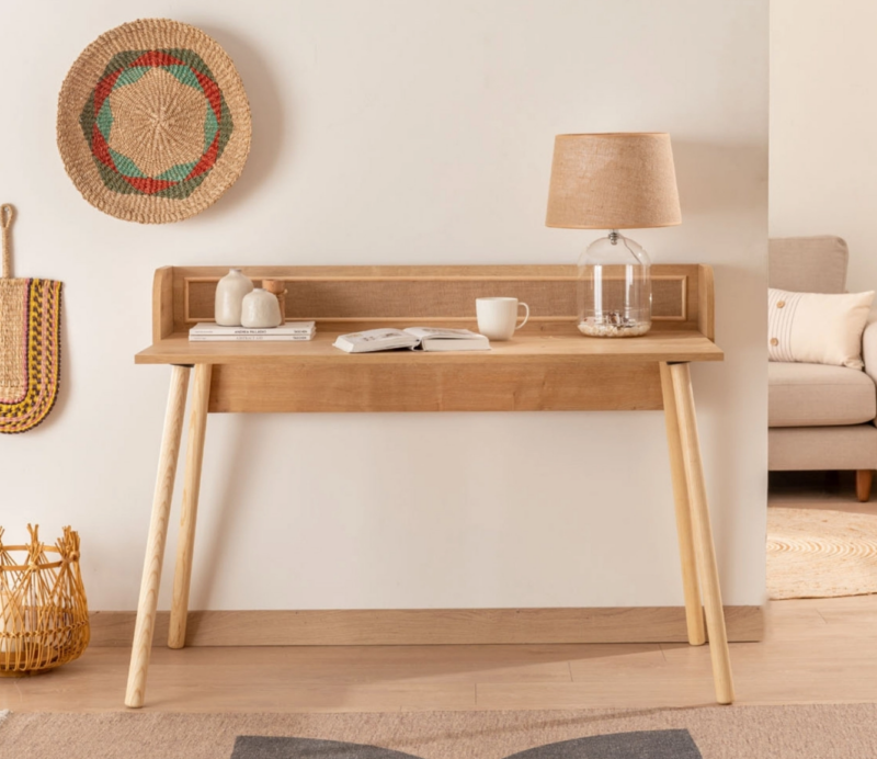 Het Torenna bureau heeft een minimalistisch ontwerp met een frisse uitstraling, dankzij de verfijnde lijnen en het lichte hout. De subtiele rondingen van het bureaublad en de achterkant zorgen voor een elegante, maar toch speelse look. Het bureau biedt voldoende werkruimte en de lichte houtkleur voegt warmte toe aan elke omgeving. Dankzij het tijdloze ontwerp is het bureau geschikt voor zowel een modern thuiskantoor als een studeerkamer. Perfect voor wie op zoek is naar eenvoud gecombineerd met functionaliteit en een natuurlijke uitstraling.