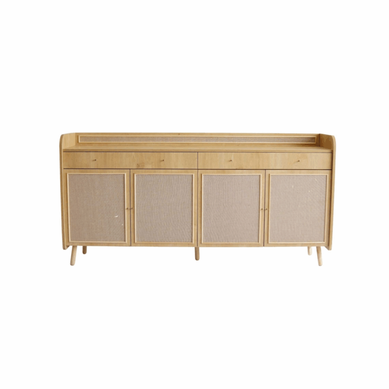 Reinig het dressoir regelmatig met een droge, zachte doek om stof te verwijderen. Bij lichte vervuiling kun je een lichtvochtige doek gebruiken, gevolgd door droogwrijven met een schone doek. Vermijd agressieve schoonmaakmiddelen en overmatig vocht. Zorg voor voldoende ventilatie rondom het meubel en voorkom plaatsing in direct zonlicht of vlak bij warmtebronnen.