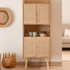 De Torenna multifunctionele kast combineert een tijdloos design met praktische opbergmogelijkheden. Dankzij de combinatie van gesloten opbergvakken en een open middenvak biedt deze kast ruimte voor zowel functionele als decoratieve items. Gebruik haar in de woonkamer, eetkamer, hal of zelfs de slaapkamer — deze kast past zich moeiteloos aan elke ruimte aan. De afgeronde hoeken en verfijnde afwerking geven de kast een warme, moderne uitstraling. De stevige poten zorgen voor stabiliteit en maken het geheel luchtig en elegant. De gesloten deuren houden je spullen netjes uit het zicht, terwijl het open vak ideaal is voor boeken, accessoires of persoonlijke decoratie. De Torenna multifunctionele kast vormt samen met andere meubels uit de Torenna-collectie een harmonieus geheel dat rust en natuurlijke charme uitstraalt in elk interieur.